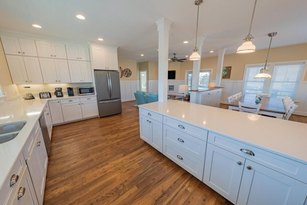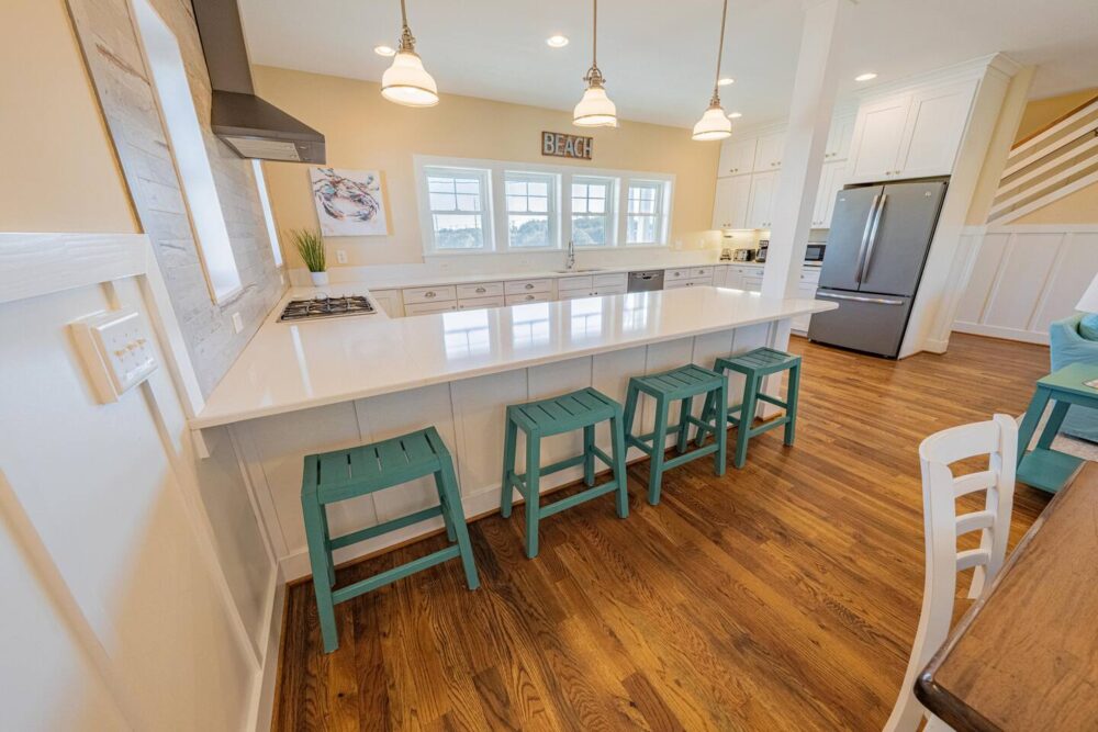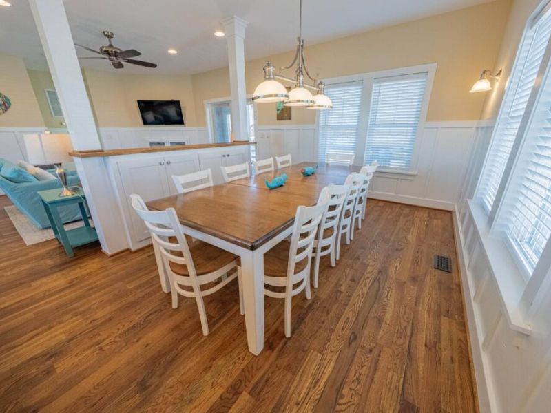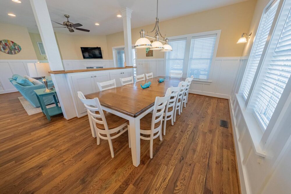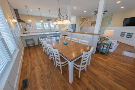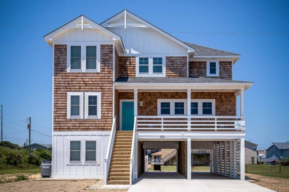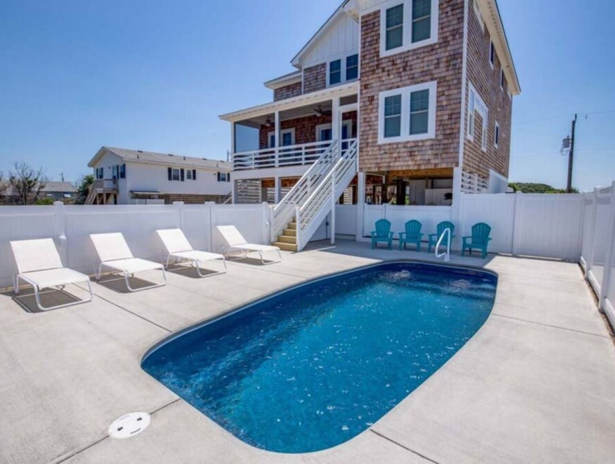 Slip into vacation mode at Catching Rays, an award-winning cedar-shake retreat in the heart of Kill Devil Hills. Stroll a few minutes down a quiet Helga Street sidewalk to the sand, then come home to your own private pool, breezy screened porch, and thoughtful layout with king suites, kid-approved bunk rooms, and a media den. Close to local eats, coffee, and the Wright Brothers Memorial, it’s an easygoing OBX home base for families and friends.