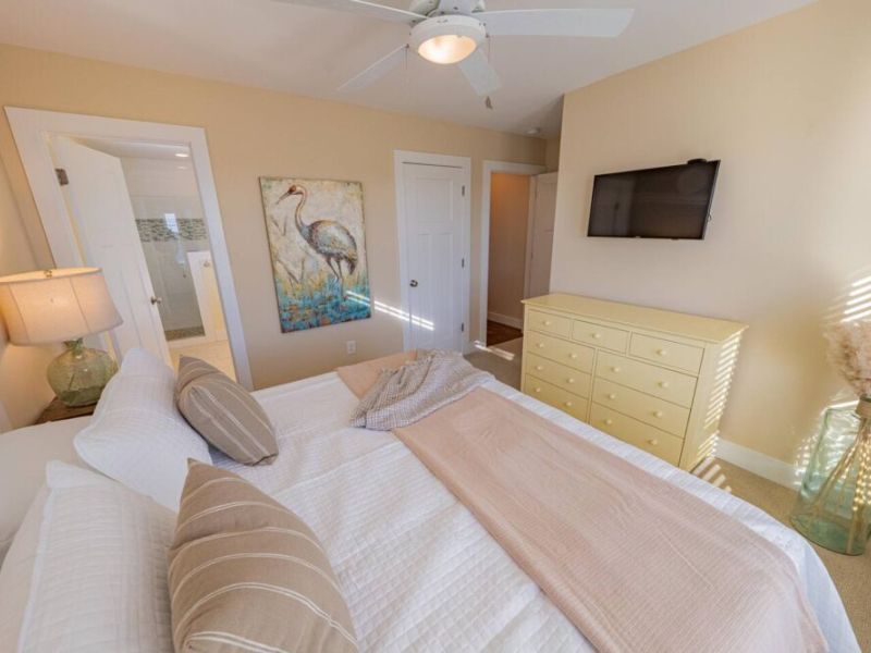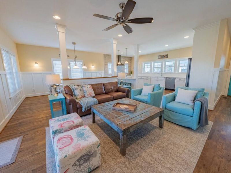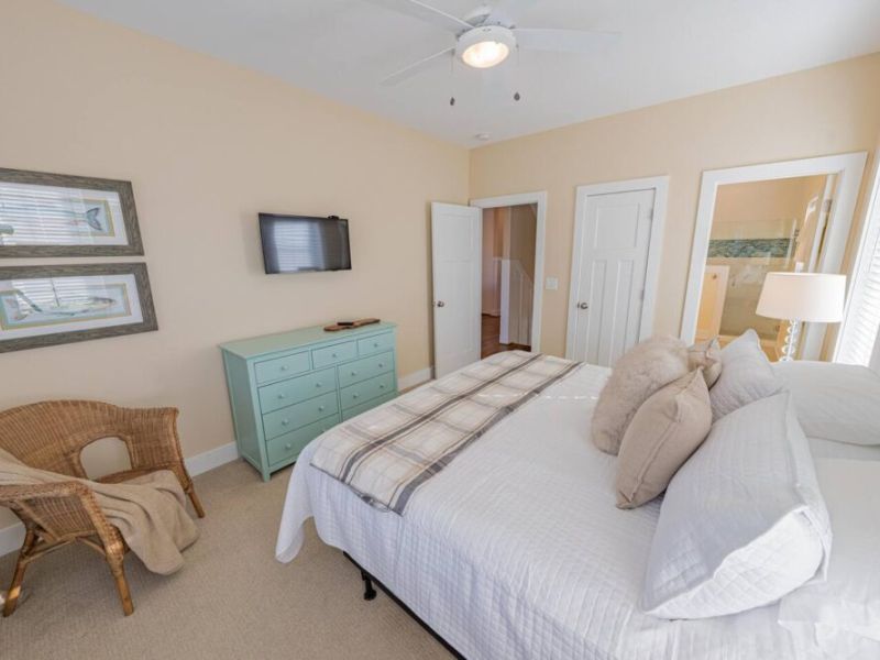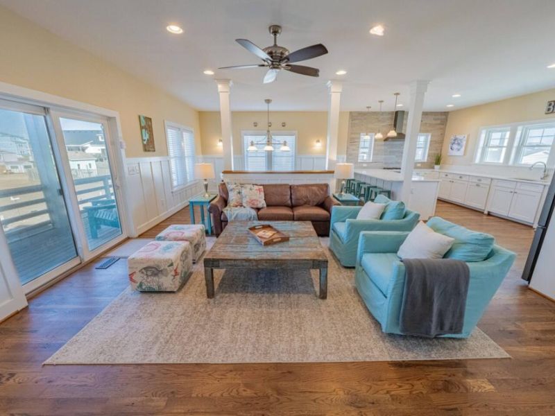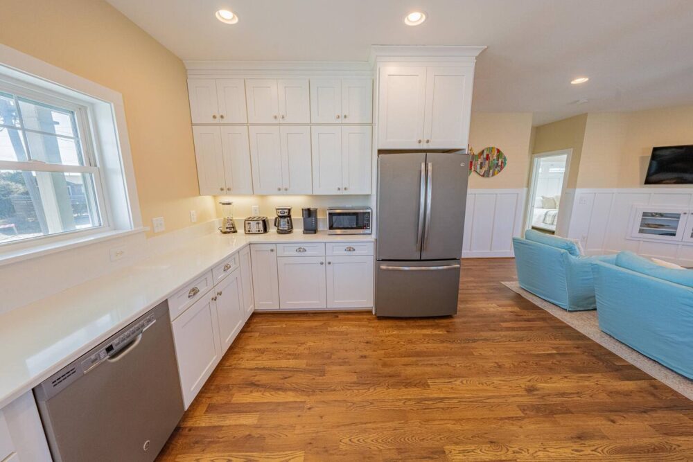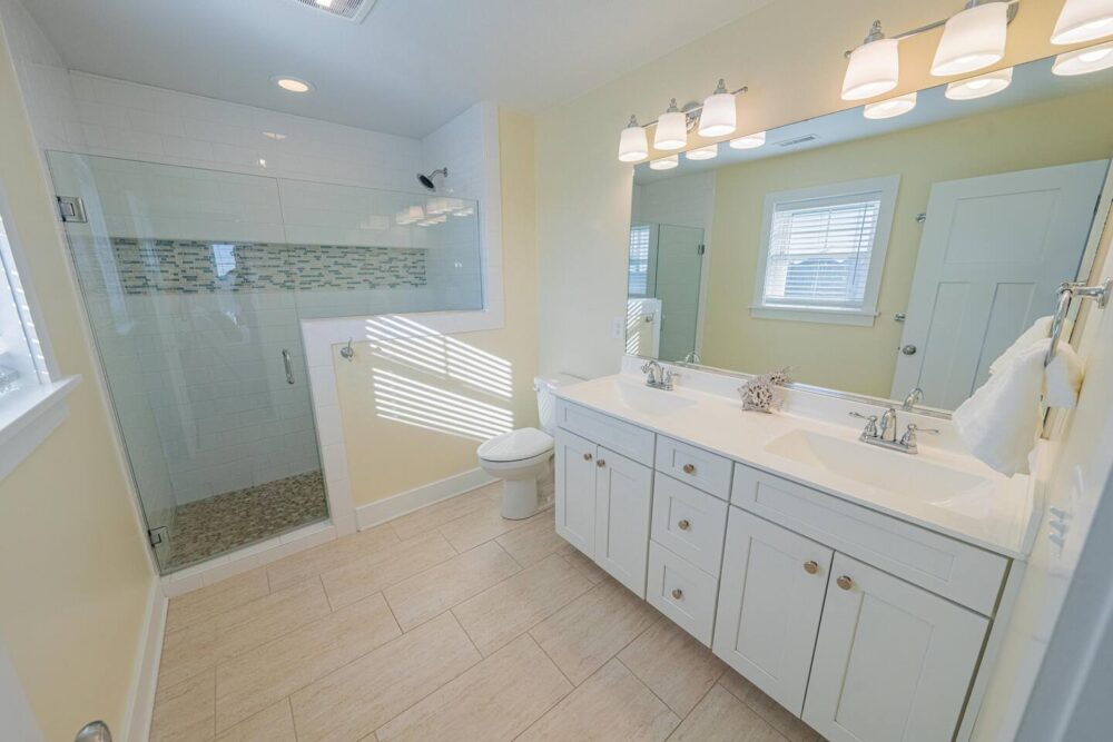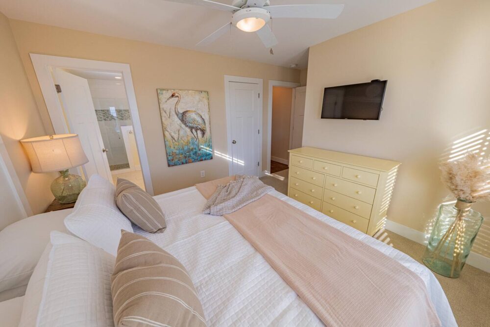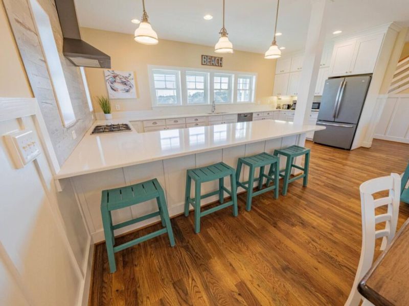 Slip into vacation mode at Catching Rays, an award-winning cedar-shake retreat in the heart of Kill Devil Hills. Stroll a few minutes down a quiet Helga Street sidewalk to the sand, then come home to your own private pool, breezy screened porch, and thoughtful layout with king suites, kid-approved bunk rooms, and a media den. Close to local eats, coffee, and the Wright Brothers Memorial, it’s an easygoing OBX home base for families and friends.