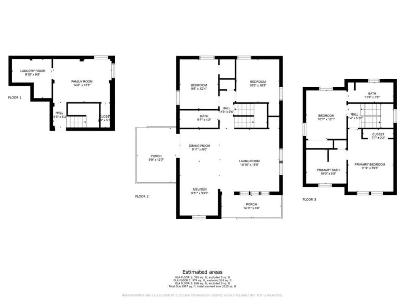 -3 full bathrooms with a shower and tub.