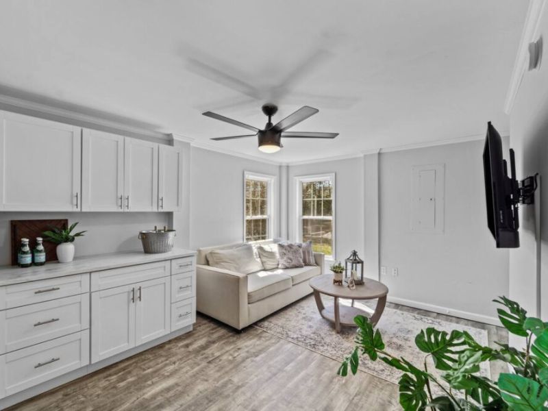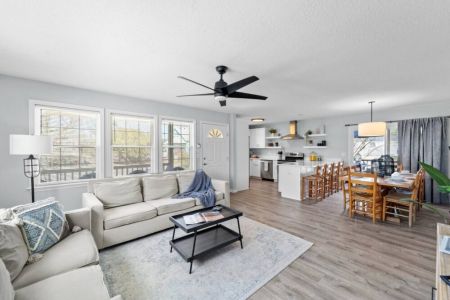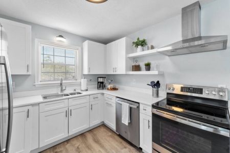 -Newly renovated kitchen with open concept layout to the dining area and living room.