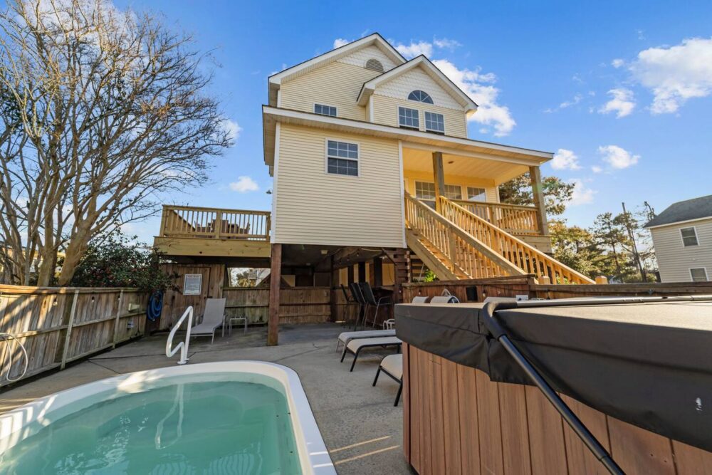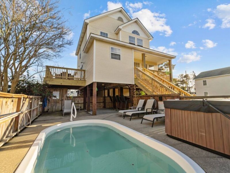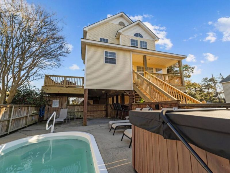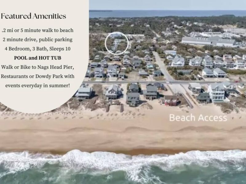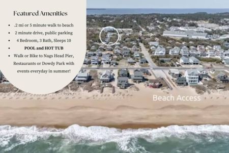 Discover JB by the Sea, our charming Nags Head Cottage nestled in the heart of OBX. Recently renovated and tastefully decorated, this beach haven promises a perfect getaway equipped with a pool, hot tub, and tiki bar. It is only .2 miles to get to the beach and ideally located near popular restaurants, coffee shops, ice cream, and an abundance of activities. Our cottage is situated on a cul-de-sac with no through traffic and in a very walkable / bikeable area with ample sidewalks & side streets
