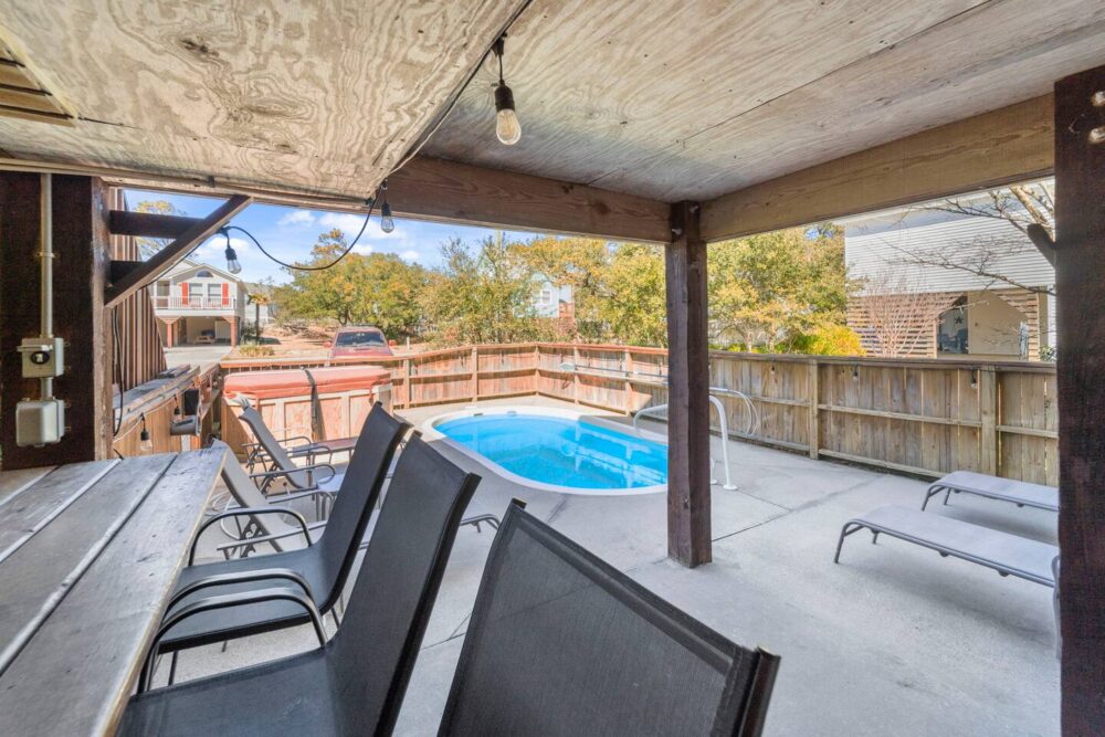 – Pool, hot tub, and outdoor tiki bar area