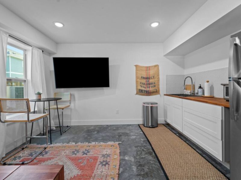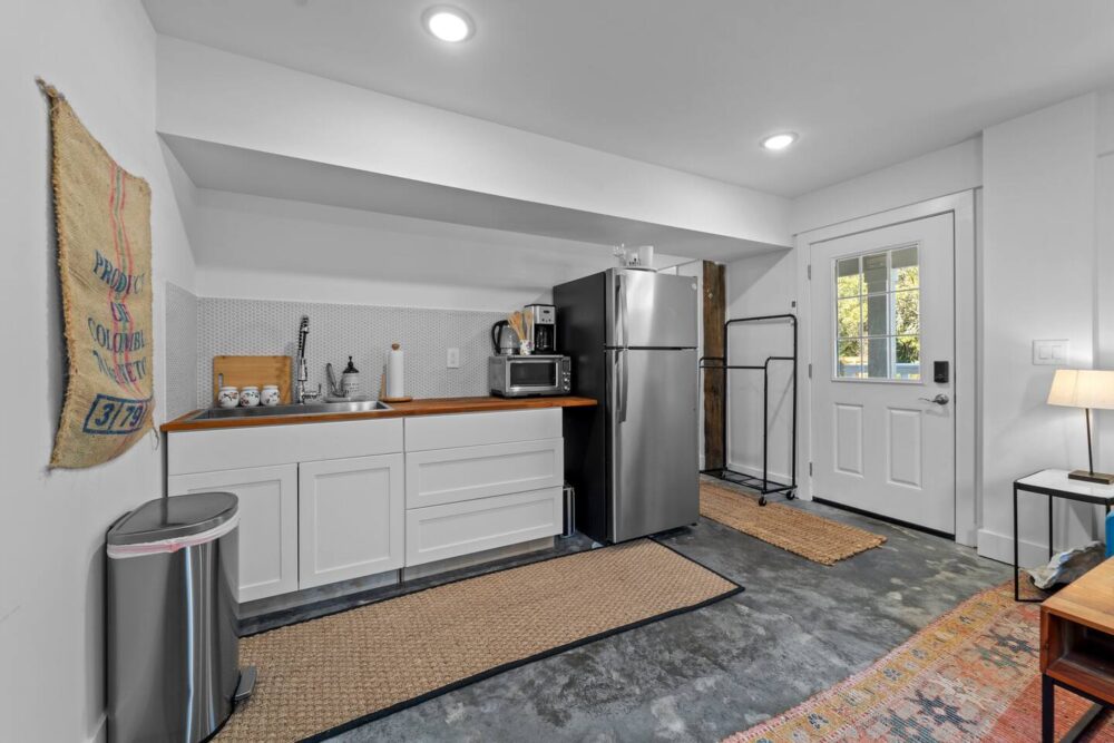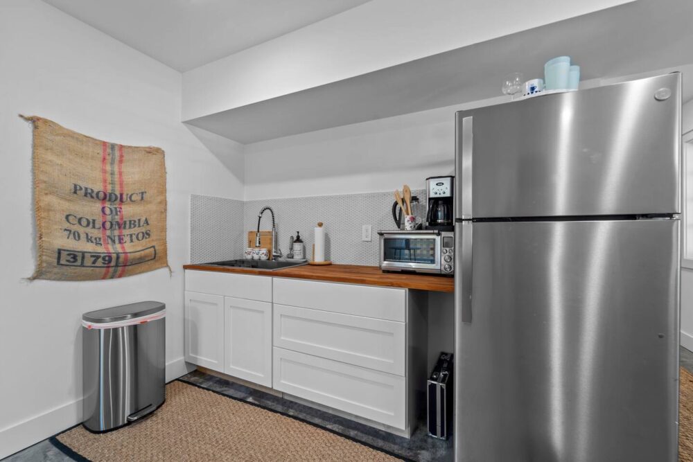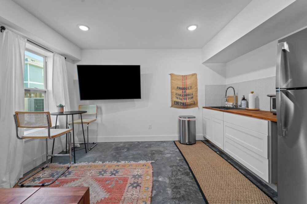 ✔ A spacious living area with a kitchenette (coffee maker, mini oven/microwave, and electric stovetop) for quick meals and snacks.