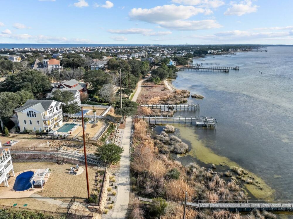 Nestled near Kitty Hawk Bay, this home offers access to a scenic sound-front walking path—perfect for morning strolls or sunset views over the water. When you’re ready for the beach, it’s just a 4-minute drive (1.2 miles) to Lillian Street Beach Access or Kitty Hawk Bath House, where you’ll find convenient parking and direct ocean access.