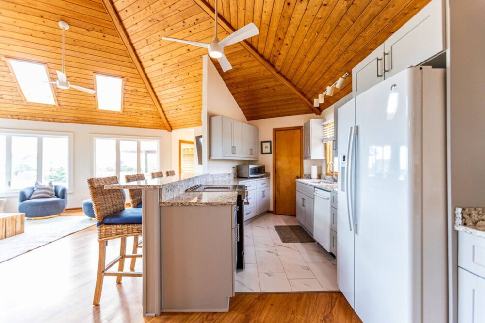 Here, you’re directly across from a private Southern Shores beach—reserved only for owners and their guests. No public parking, no crowds—just the salt air, rolling waves, and room to spread out. In minutes, you can stroll or bike to local favorites like Ocean Boulevard Bistro, morning coffee shops, and boutique shopping in Kitty Hawk.