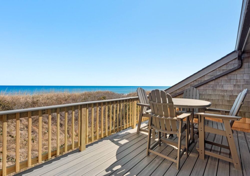 The top-level living area delivers panoramic ocean views that truly steal the show, while the mid-level dune provides extra privacy. Enjoy your morning coffee or evening cocktails on one of two ocean-facing decks, or stroll just a few steps to the beach or the community pool for a change of pace.