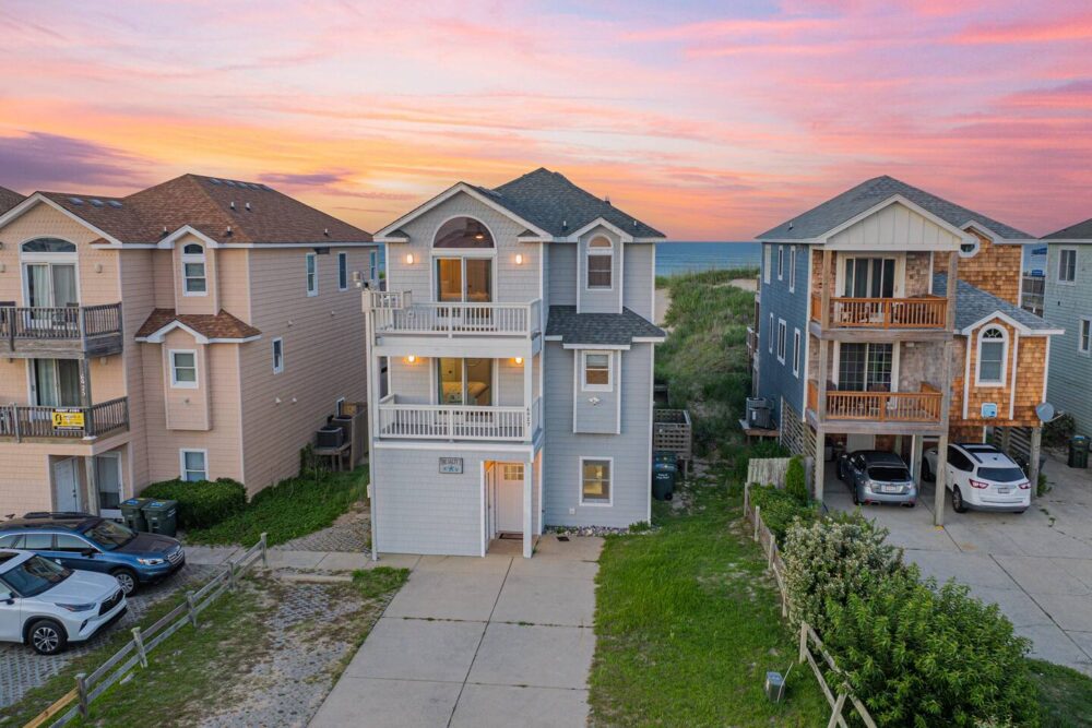 Bring the whole family to this great place with lots of room for fun. Welcome to Salty 7 — a luxury oceanfront retreat in Nags Head with 8 bedrooms, 7.5 baths, a private pool, game room, and incredible ocean-to-sound views. Renovated with all new furniture, flooring, and designer touches. Enjoy sunrise coffee on the deck, sunset over the sound, and walk to Jeanette’s Pier.