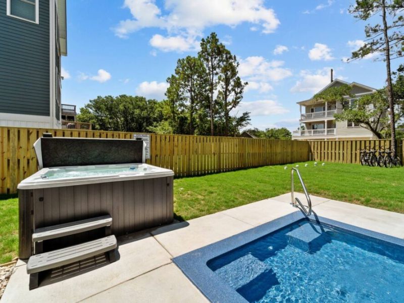 Escape to Coastal Bliss: Nags Head Retreat with Pool, Game Room, and Private Suites! Only .4 or 8 minute walk or 2 minute drive to the ocean access via Bainbridge Street or Nags Head Fishing Pier. Indulge in luxury crafted by Simpleside Construction, renowned for their award-winning craftsmanship. Relax in style with chic furnishings curated by Site to Sea Interior Design. Unwind in the serene ambiance of Nags Head, boasting tranquil surroundings and easy access to local dining, shopping, and idyllic beaches for fishing, surfing, or simply soaking up the sun. With ample living space, fenced yard, and top-notch amenities including a hot tub and video arcade, this coastal haven promises an unforgettable retreat for your family’s enjoyment. Your dream vacation awaits in this coastal paradise!