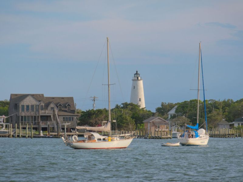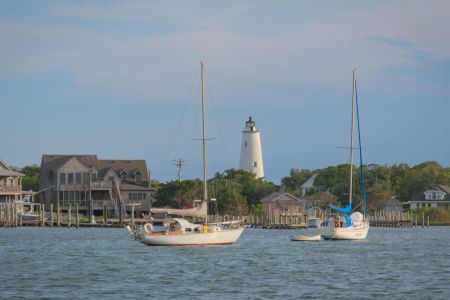 Quiet Outer Banks village atmosphere: historic lighthouse, village shops, seafood restaurants, small galleries and museums within a short bike or tram ride. Nearby natural attractions include Cape Hatteras National Seashore beaches, Springer’s Point and maritime forests. The community is small and seasonal — summers are busy, off-season is very peaceful.