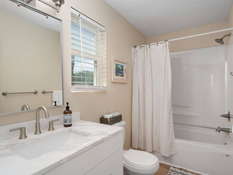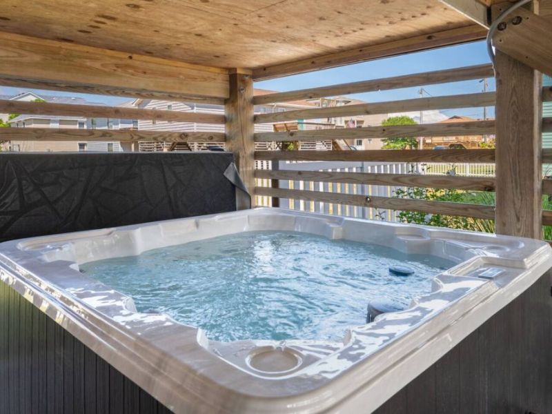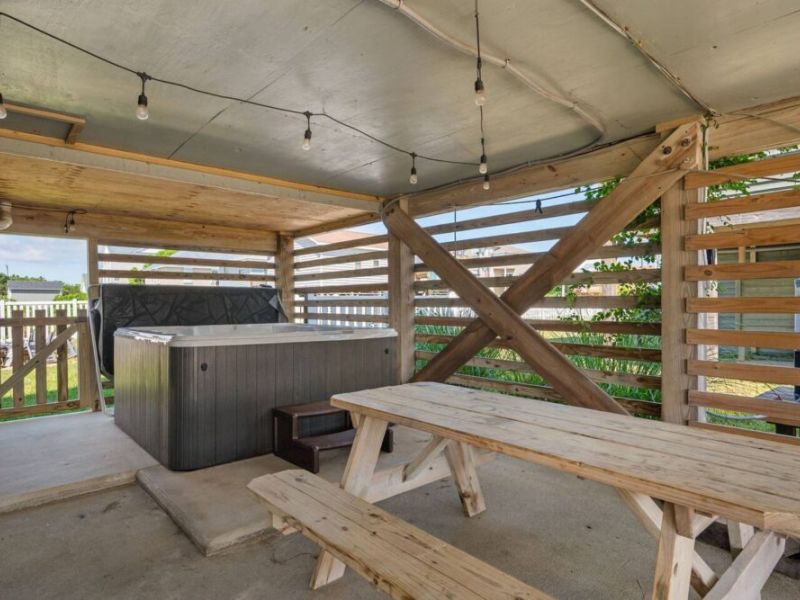 Beds are large, comfy, and master bathroom is extra spacious! Hot tub is nicely tucked away for some privacy. Fully enclosed fenced-in backyard.
