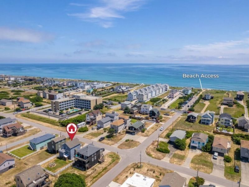 (Careful: Other beach houses might also technically be one block back from the beach, but then you might have to walk 1/2 mile up or down find public beach access.)